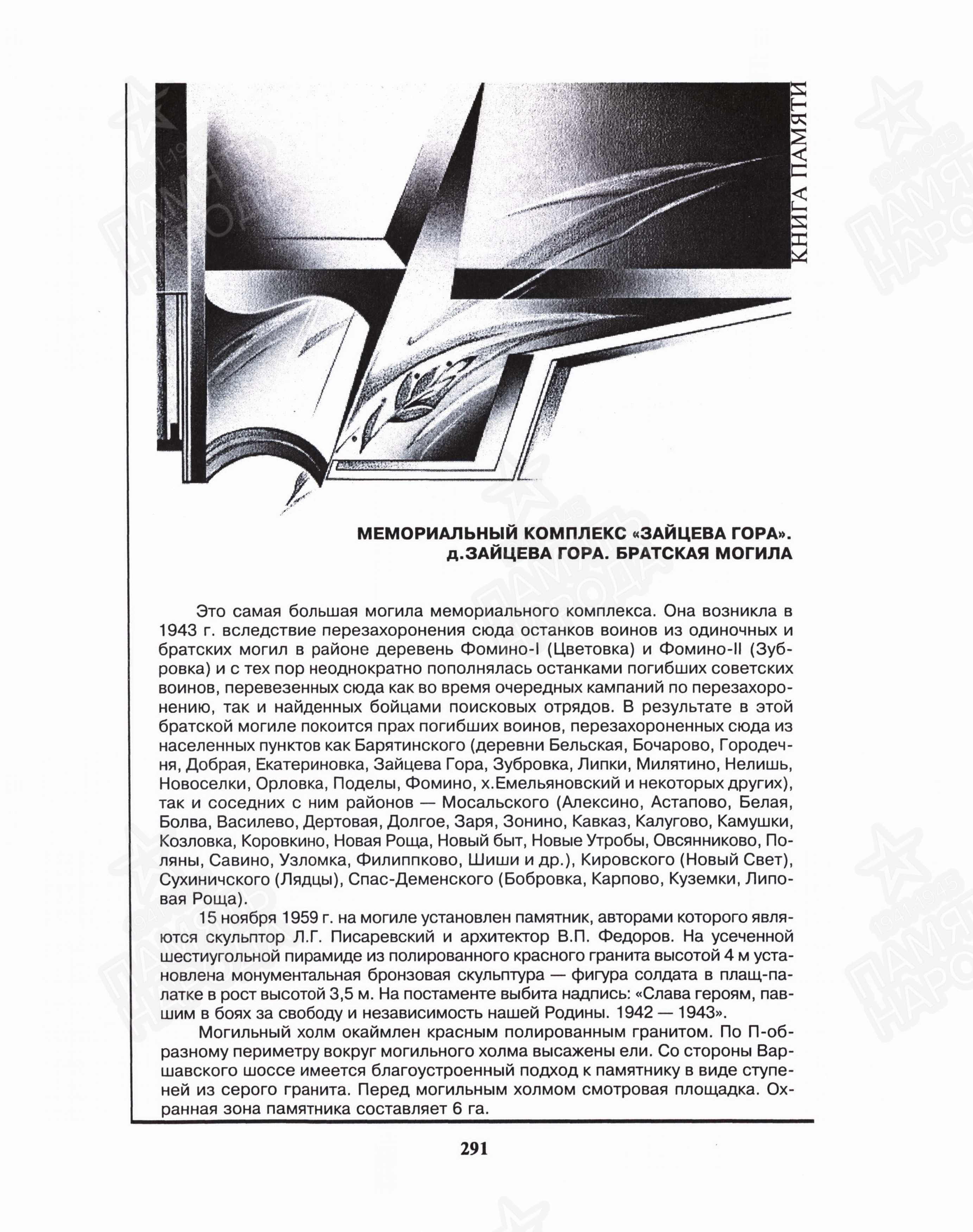 Список захороненных воинов Мемориальный комплекс «Зайцева Гора» д. Зайцева Гора.